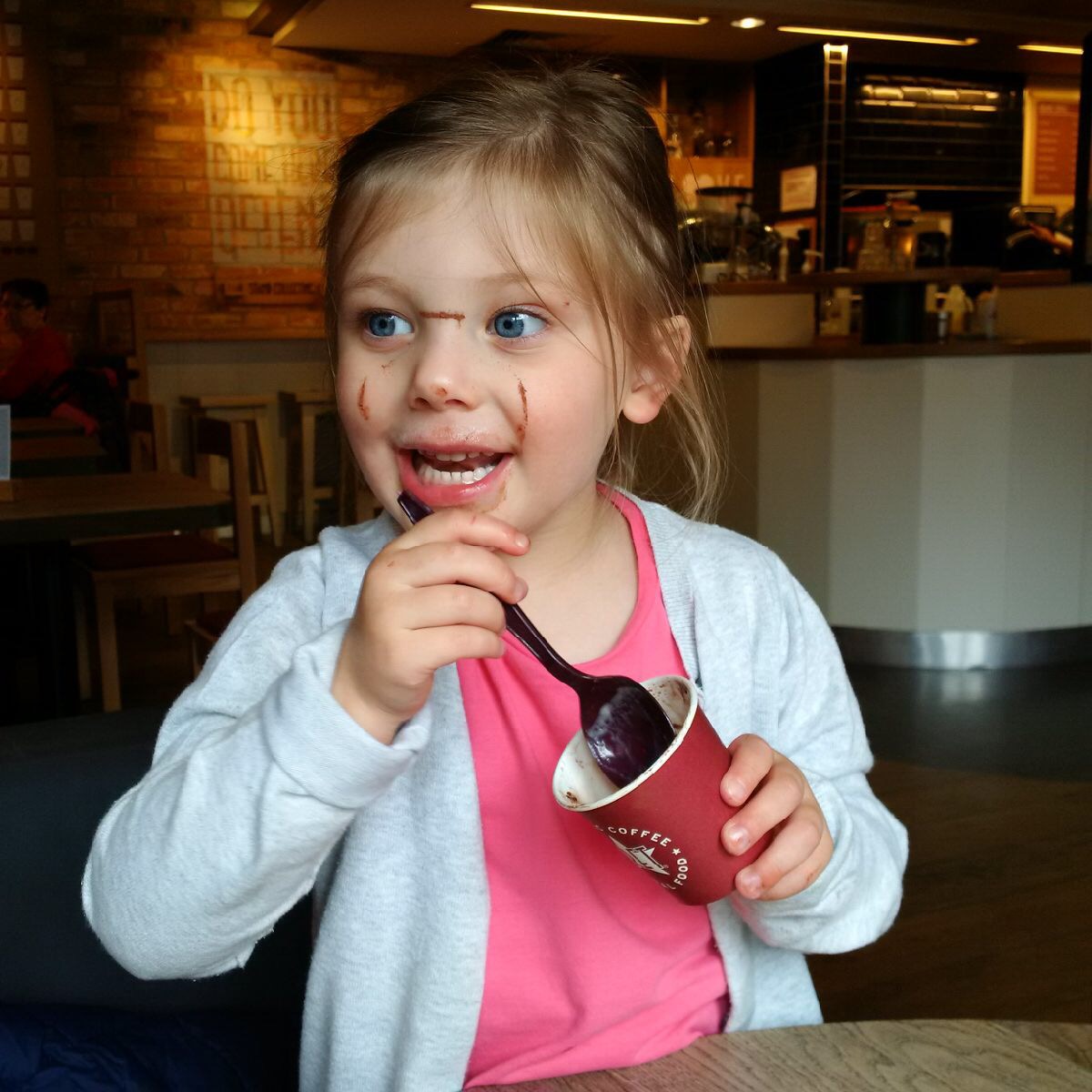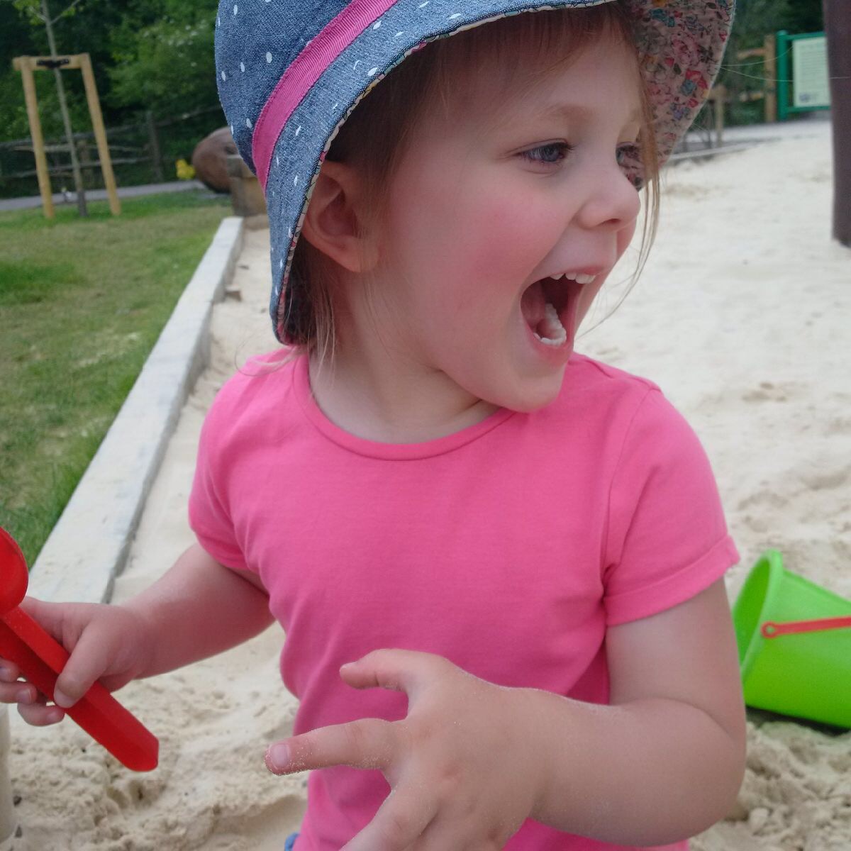 Ready for the eating….in her knicks having got soaked washing Mummy’s car!